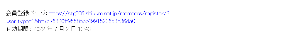 - 会員登録ページのURLは、有効期限を超過すると「失効」します。