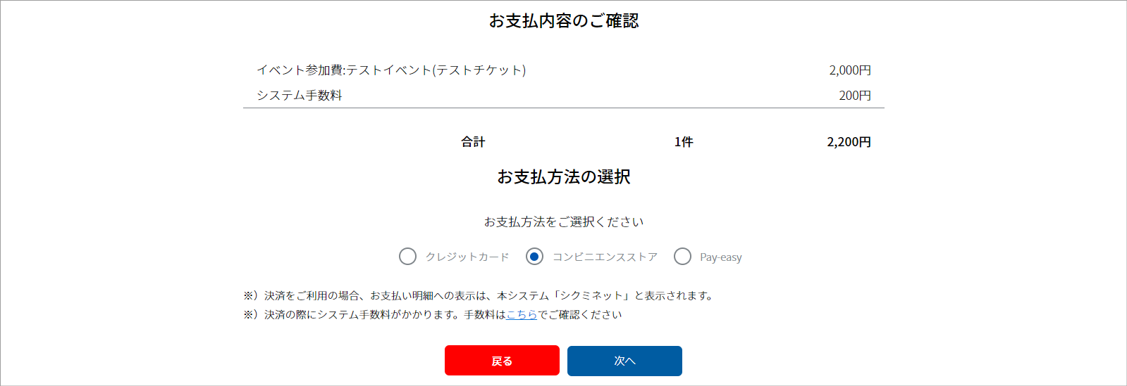決済中支払い方法を選択し、支払い手続きをしている状態
