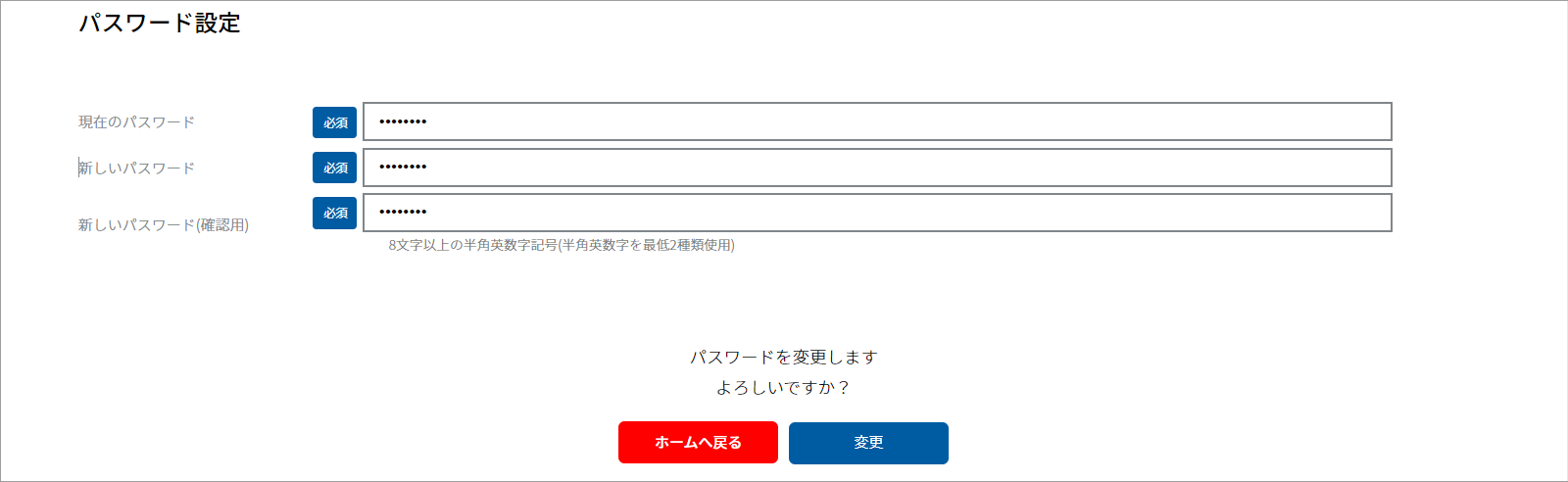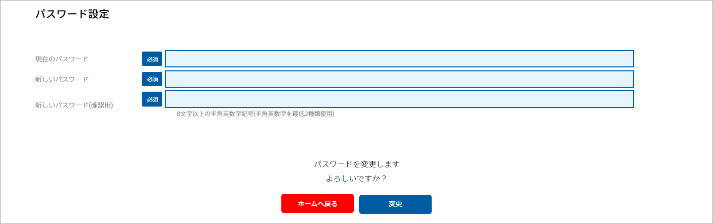 ⑤現在のパスワードと新しいパスワードを入力し、「変更」をクリックします。
